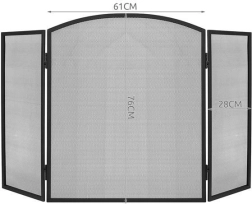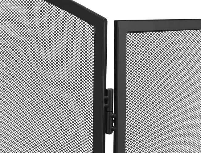 Elegante pantalla para chimenea de tres paneles con fina malla de acero que protege de forma fiable el suelo y el entorno de las chispas y las brasas. Gracias a sus dimensiones de 118 × 76 cm ofrece un alto nivel de seguridad, el acabado negro mate combina a la perfección con el interior y su estructura plegable permite un ajuste libre según el ancho y la forma de la chimenea. La malla de acero resistente deja pasar el calor y la vista de las llamas, pero retiene la suciedad y el calor radiante.