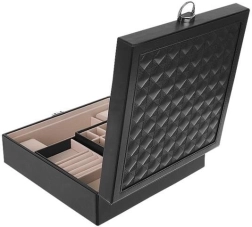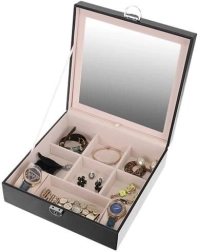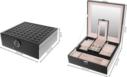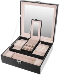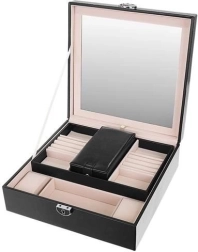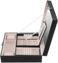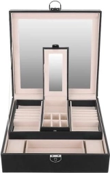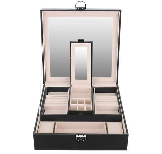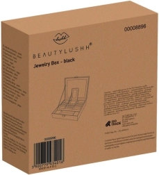 Elegante caja de joyas Beautylushh en color negro, ideal para organizar y proteger tus objetos de valor. Con espacio de almacenamiento multinivel y espejo, ofrece todo lo que necesitas para guardar tus joyas de forma ordenada.