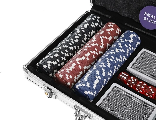 Organiza tu propia noche de póker con un set completo que ofrece todo lo necesario para Texas Hold'em y otros juegos de cartas. Las fichas con núcleo metálico (10 g) aportan una sensación auténtica de casino: tienen un peso agradable, se apilan de maravilla y son muy resistentes. Todo se guarda en un maletín de aluminio robusto con acolchado de espuma y compartimentos moldeados con precisión, de modo que el contenido permanece en su sitio incluso durante los viajes.