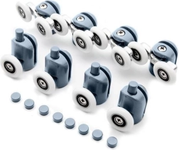 Ruedas universales para puertas de ducha correderas que garantizan un deslizamiento suave y silencioso, una guía firme y un cierre perfecto para mantener el baño seco. Gracias al sistema de desconexión rápida de las ruedas inferiores, podrás limpiar fácilmente las guías y el vidrio sin desmontaje. Los materiales resistentes – nylon, acero inoxidable y acero al carbono – aseguran una larga vida útil y fiabilidad.