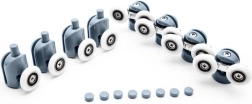 - 4× ruedas superiores dobles, 4× ruedas inferiores simples (abatibles/desmontables), 8× tapas