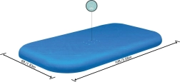 La lona está diseñada para piscinas rectangulares de 305 × 183 × 56 cm; la medida propia de la lona es de 328 × 209 cm para cubrir cómodamente el borde. Es fácil de limpiar, resistente a la suciedad y aporta una seguridad adicional contra caídas accidentales de niños al agua.