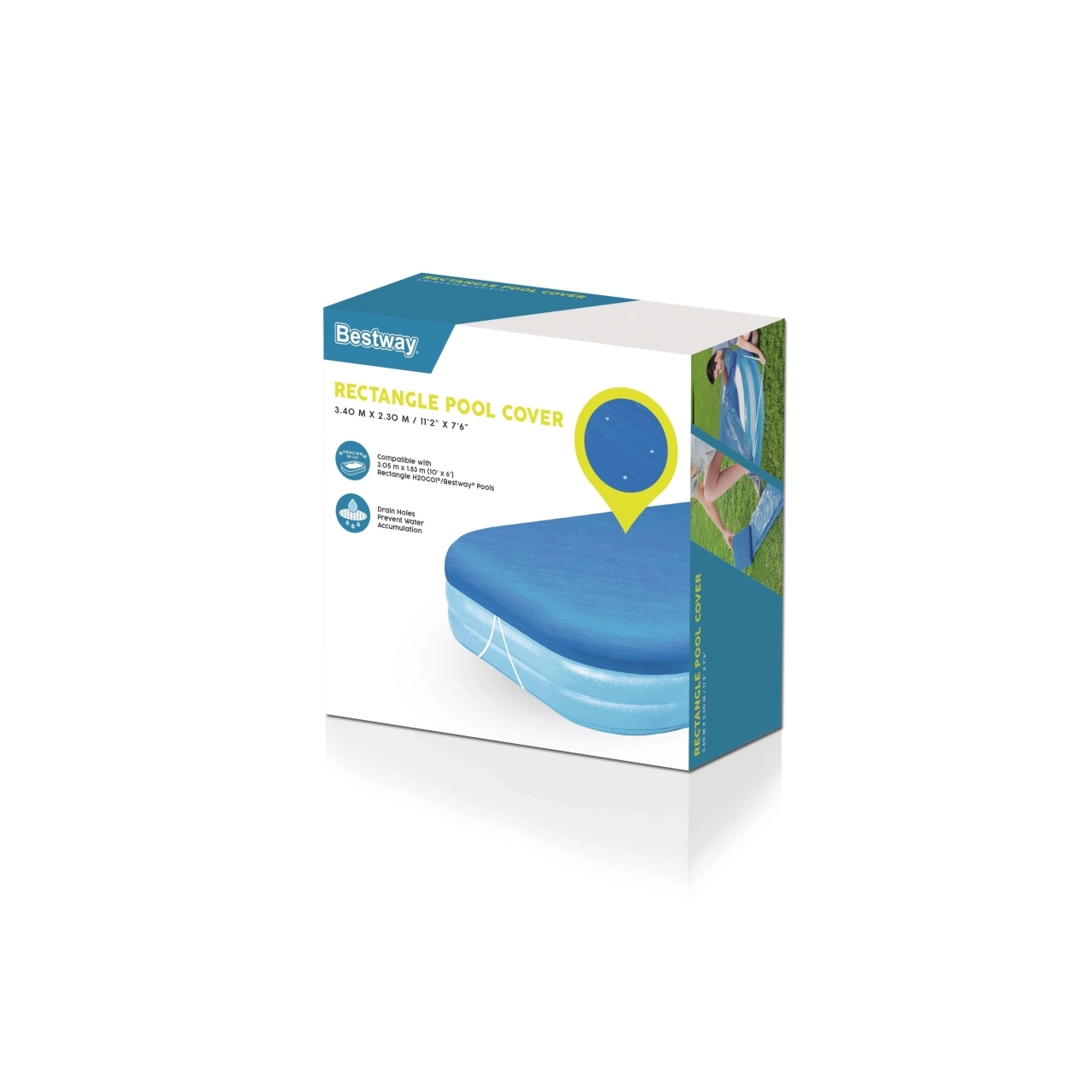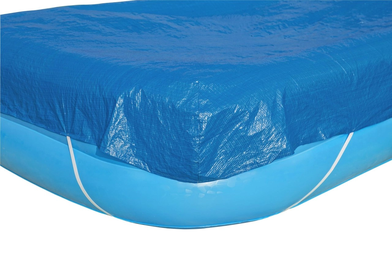Mantén el agua limpia y segura con la lona de cobertura BESTWAY para piscinas rectangulares de 305 × 183 cm. La lona protege de suciedad, insectos y hojas, mejora la aislación térmica del agua y, gracias a las cuerdas de sujeción y a los orificios de drenaje, se mantiene firme y evacúa el exceso de agua.