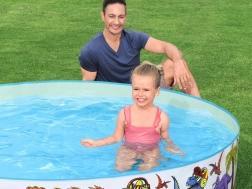 La piscina infantil Bestway con coloridos estampados de dinosaurios es una gran opción para los días calurosos. Gracias a su estructura autoexpandible, basta con desplegarla y llenarla de agua: en un momento estará lista para la diversión acuática. El material de PVC resistente garantiza una larga vida útil y un uso sin preocupaciones.