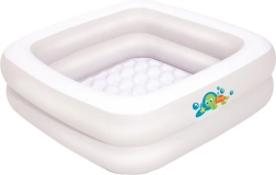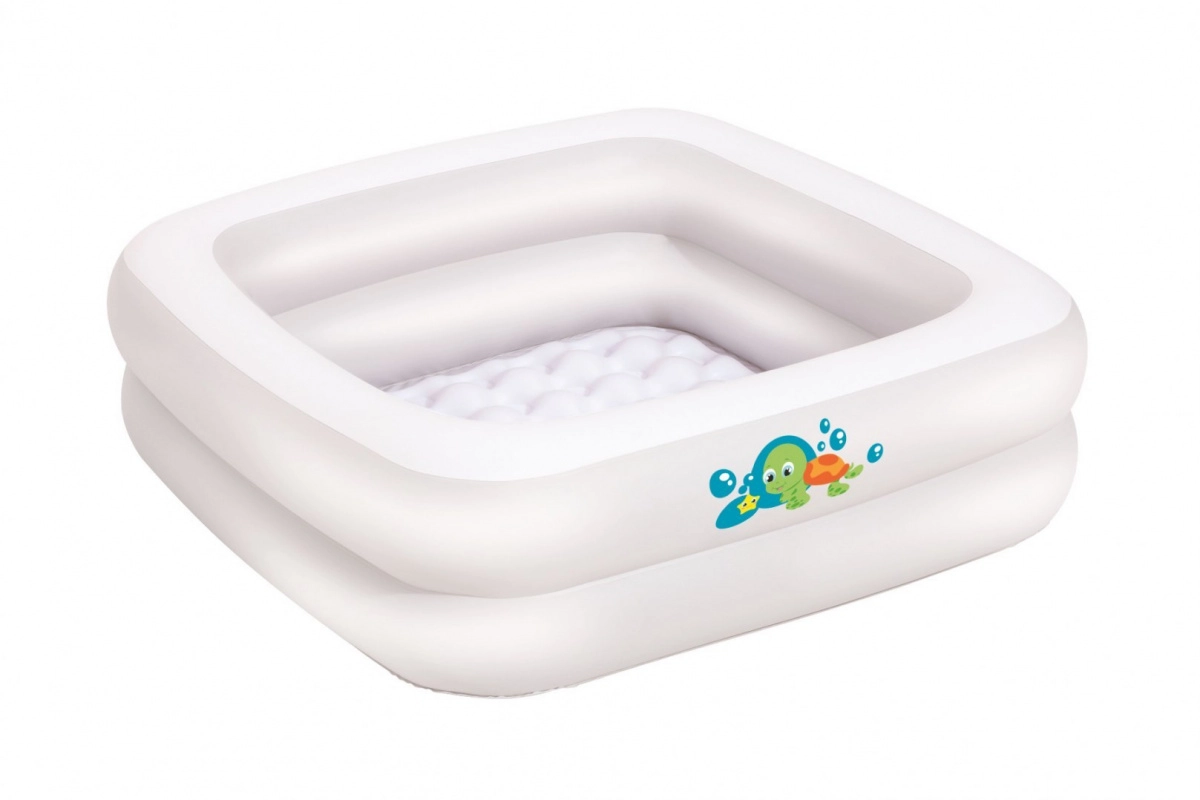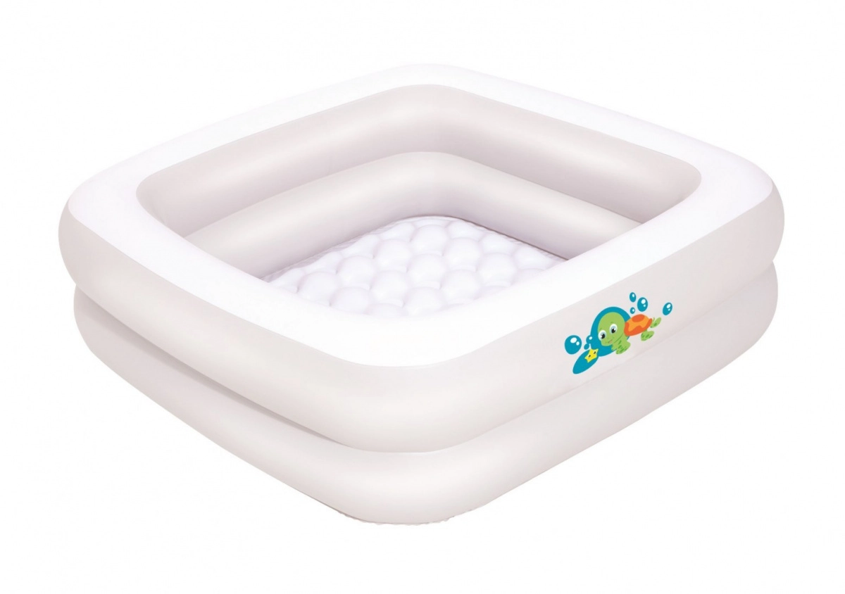 La bañera/piscina inflable Bestway BABY STEP 1-2-3 ofrece a tu bebé un entorno cómodo y seguro para el baño y sus primeras aventuras acuáticas. La forma cuadrada de 86 × 86 cm brinda espacio suficiente, mientras que el suelo inflable es suave, agradable y ayuda a prevenir deslizamientos.
