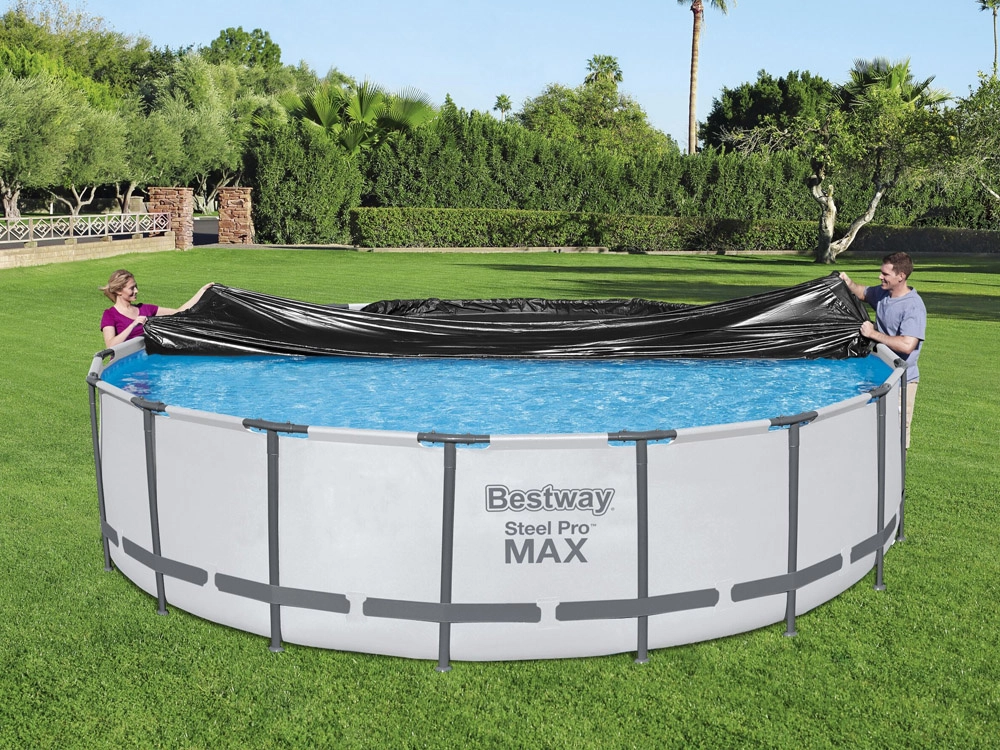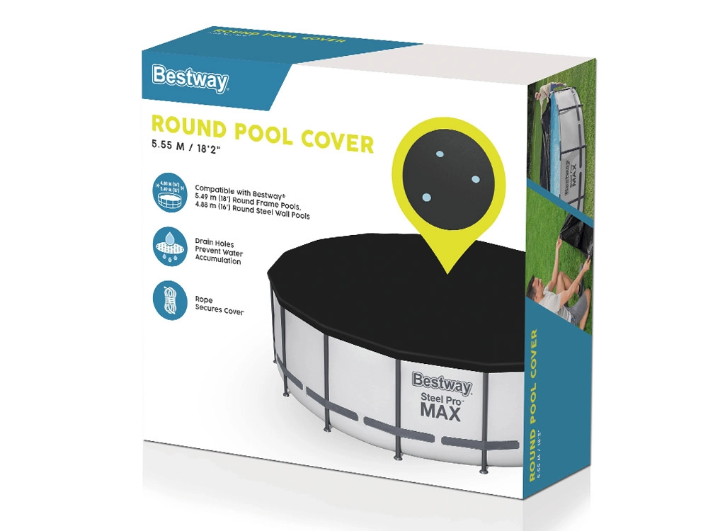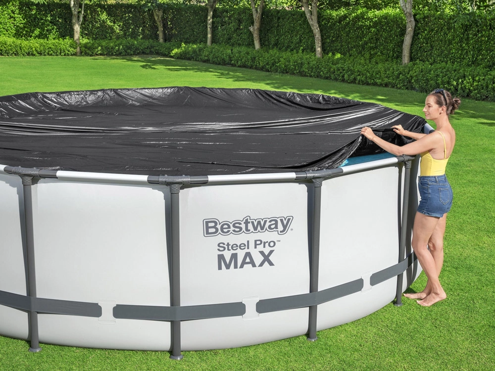 La lona protectora para piscinas Bestway protege su piscina de suciedad como insectos, hojas y lluvia ligera. Aporta una capa aislante adicional para mantener la temperatura del agua y mejora la seguridad frente a caídas accidentales en la piscina.