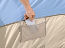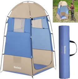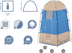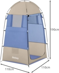 Este vestidor portátil de la marca Bestway ofrece espacio suficiente para cambiarse, ideal para playas, lagos o campings donde necesitas privacidad. La cabina está equipada con una cremallera para un acceso fácil y ventilación, e incluye tres ventanas opacas para una ventilación eficiente. En el interior también encontrarás un práctico bolsillo donde puedes guardar el teléfono móvil, las llaves o el dinero.