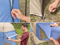 La cabina cuenta con una cremallera que permite un acceso sencillo y ventilación. Tres ventanas laterales garantizan una ventilación eficaz.