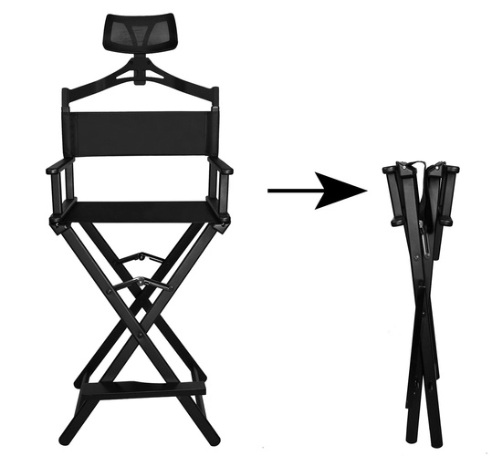 El armazón plegable en X de aluminio permite plegar, transportar y almacenar la silla rápidamente incluso en espacios reducidos, ideal para maquilladores móviles.