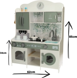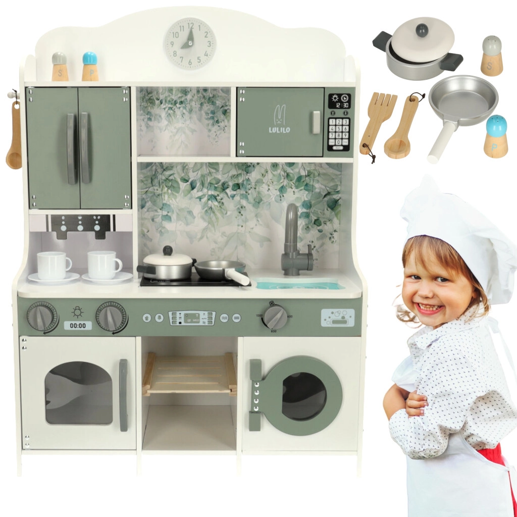 Vive la magia del reino de la cocina con la cocinita infantil de madera Lulilo Saliko. A los niños les encanta imitar a los adultos y esta cocinita les brinda el espacio para desarrollar sus habilidades creativas y manuales. Con funciones realistas como microondas y cafetera, se convertirán en los chefs principales de su hogar.