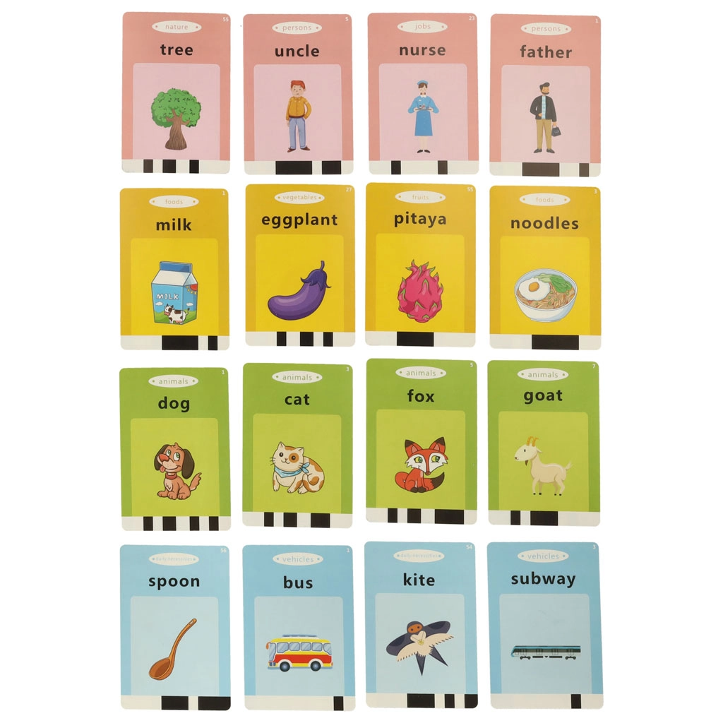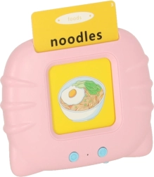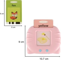 Las tarjetas están codificadas por colores según los temas (comida, colores y profesiones, animales, vehículos y objetos), por lo que el aprendizaje se puede estructurar por categorías e ir avanzando por niveles. El manejo es intuitivo: con un botón reproduces la grabación y con otro ajustas el volumen. Los padres apreciarán el diseño seguro y las dimensiones compactas para aprender en casa o de viaje.