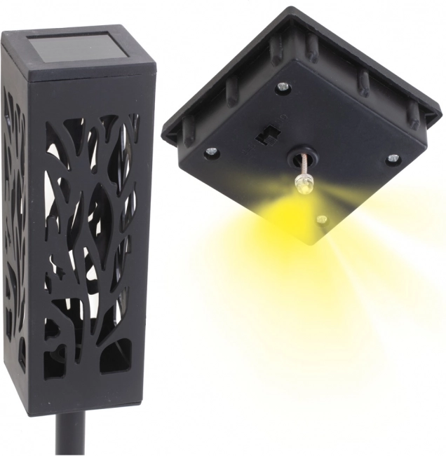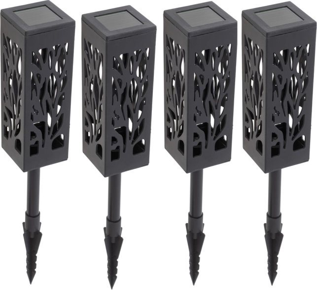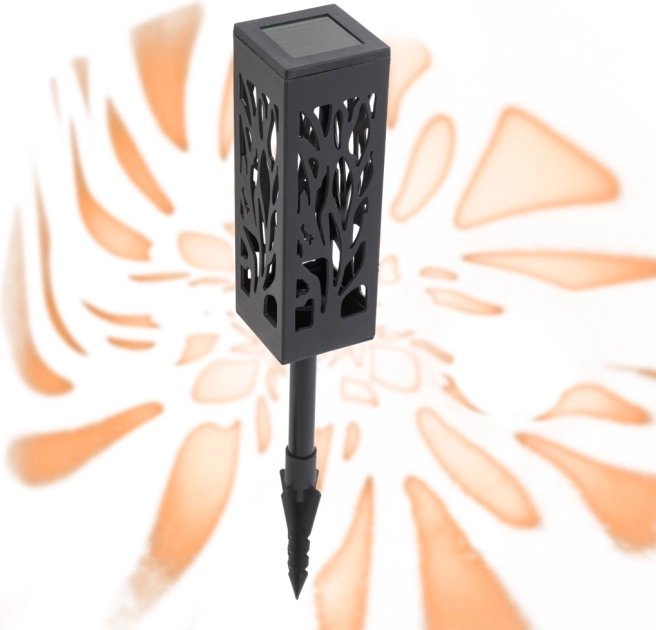 Elegantes lámparas solares para jardín, terraza o balcón que combinan diseño moderno e iluminación ecológica. El adorno calado del cuerpo genera tras el anochecer efectos luminosos llamativos que resaltan senderos, canteros y bordes de terrazas. La instalación lleva un instante: basta con clavarlas en el suelo.