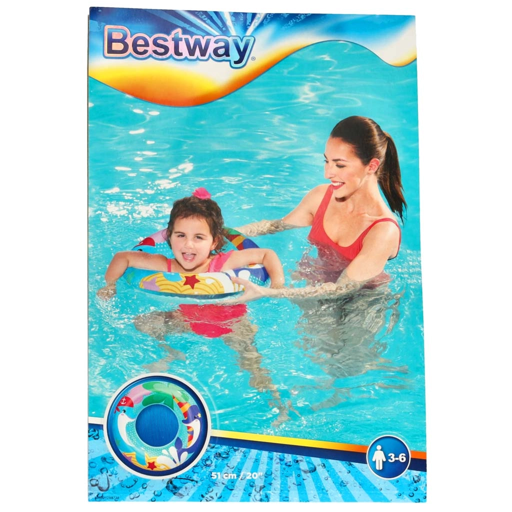 Disfruta de un refrescante verano con el flotador infantil BESTWAY. El alegre diseño con delfín atrae de inmediato a los niños y los motiva a jugar en el agua. El flotador de 51 cm de diámetro es una gran opción para los más pequeños: proporciona una flotación estable sin limitar la libertad de movimiento.