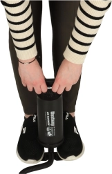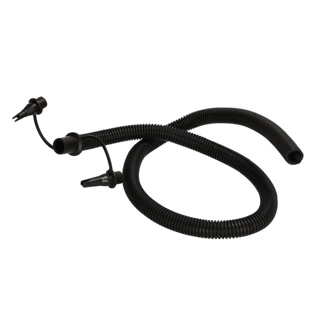 La manguera flexible con tres boquillas diferentes permite adaptarse a distintas válvulas de fabricantes de dispositivos inflables. El mecanismo de bombeo en ambos sentidos —de abajo hacia arriba y de arriba hacia abajo— proporciona un inflado rápido y eficiente. La base de la bomba con apoyos para los pies está diseñada para ofrecer una estabilidad óptima durante el uso.