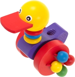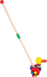 Este colorido patito de madera es el compañero ideal para los paseos. Está diseñado para apoyar la motricidad y el movimiento infantil. Gracias al palo de madera fácil de manejar, el patito puede ser guiado o los niños pueden jugar con él de forma independiente.
