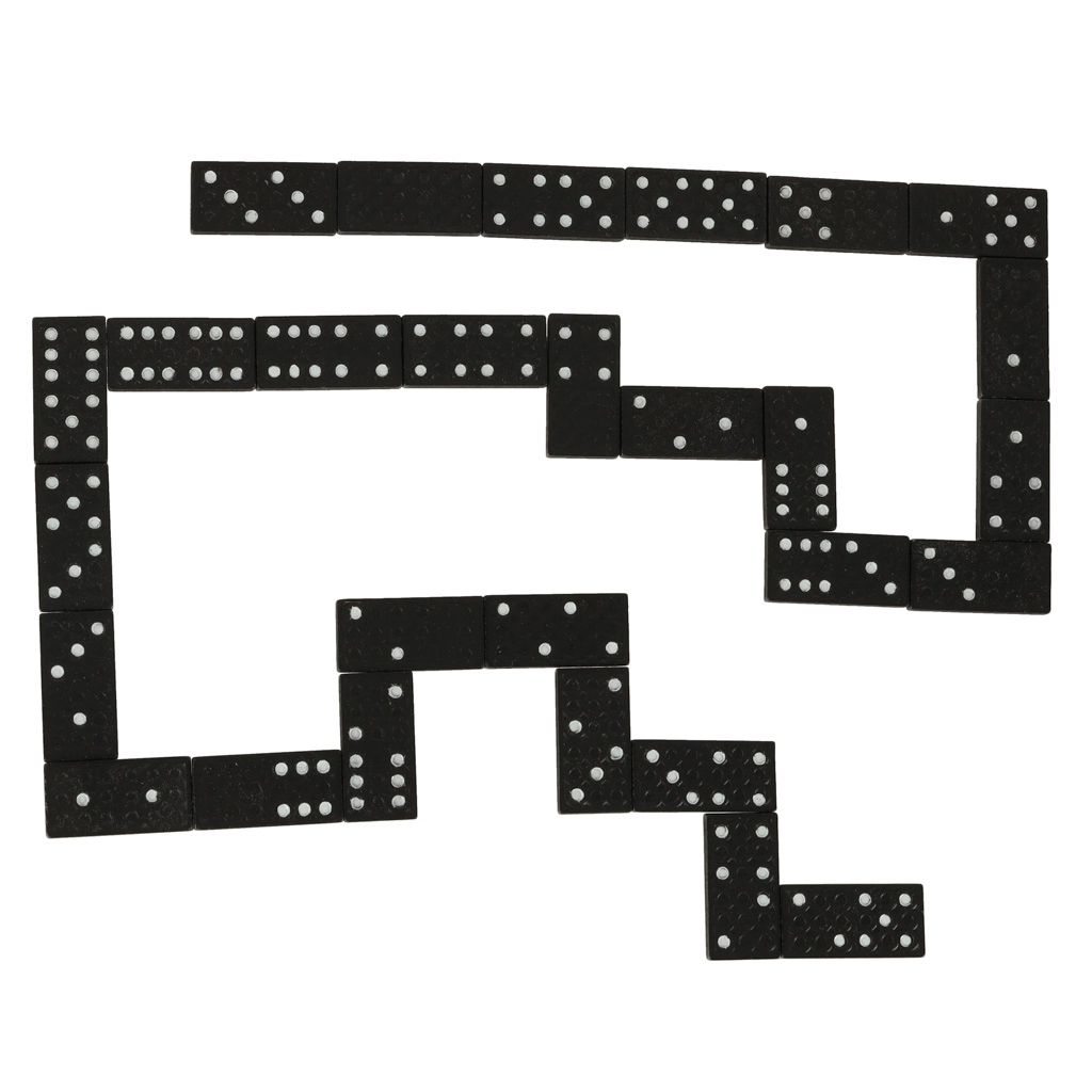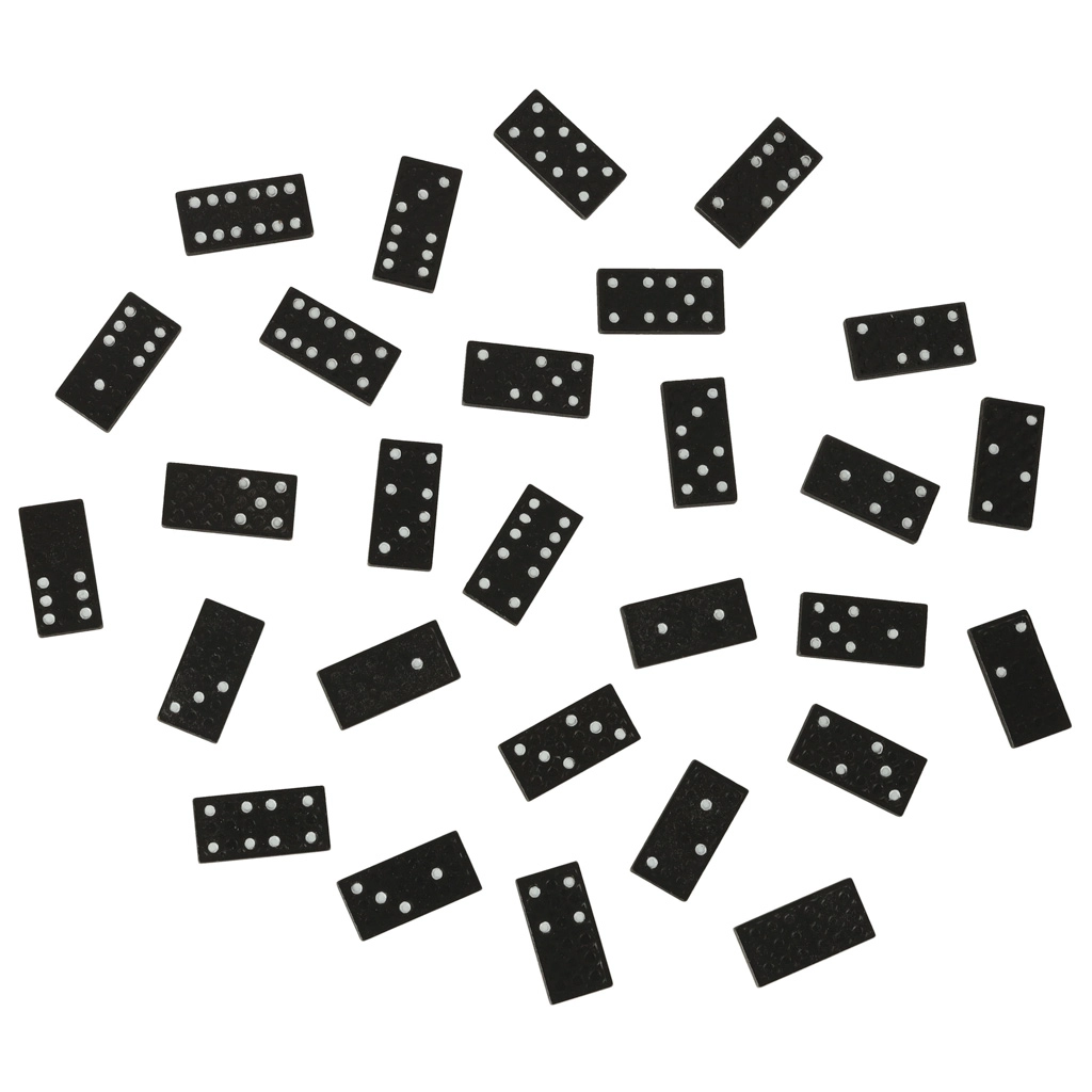 Dominó negro con puntos blancos (0–6) que garantiza una excelente legibilidad de los números y un desarrollo fluido del juego para niños y adultos.