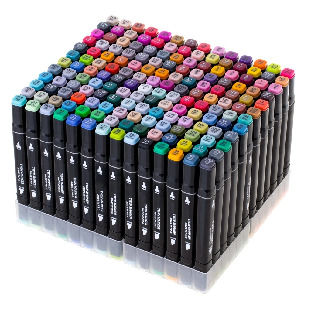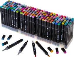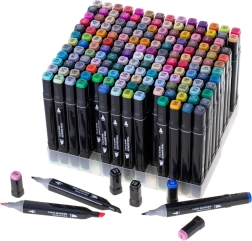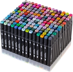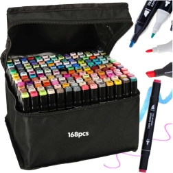 Desata tu creatividad con el set de 168 rotuladores de alcohol de doble punta en un práctico estuche y con base de plástico. Colores frescos e intensos que se mezclan y difuminan fácilmente, se secan rápido y no manchas. La punta ancha y la fina garantizan detalles precisos y relleno rápido de superficies—ideal para ilustración, bocetos, diseño y coloreado.