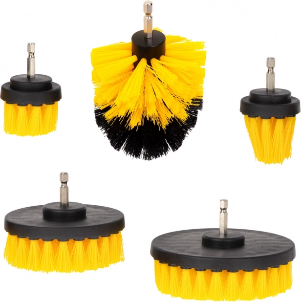 El juego de cinco accesorios de limpieza para taladro es ideal para quienes desean lograr una limpieza perfecta con un esfuerzo mínimo. Estos accesorios son compatibles con todos los taladros y atornilladores a batería, lo que garantiza un manejo y un cambio sencillos. La rotación de alta velocidad asegura una limpieza eficaz incluso en las superficies más sucias.