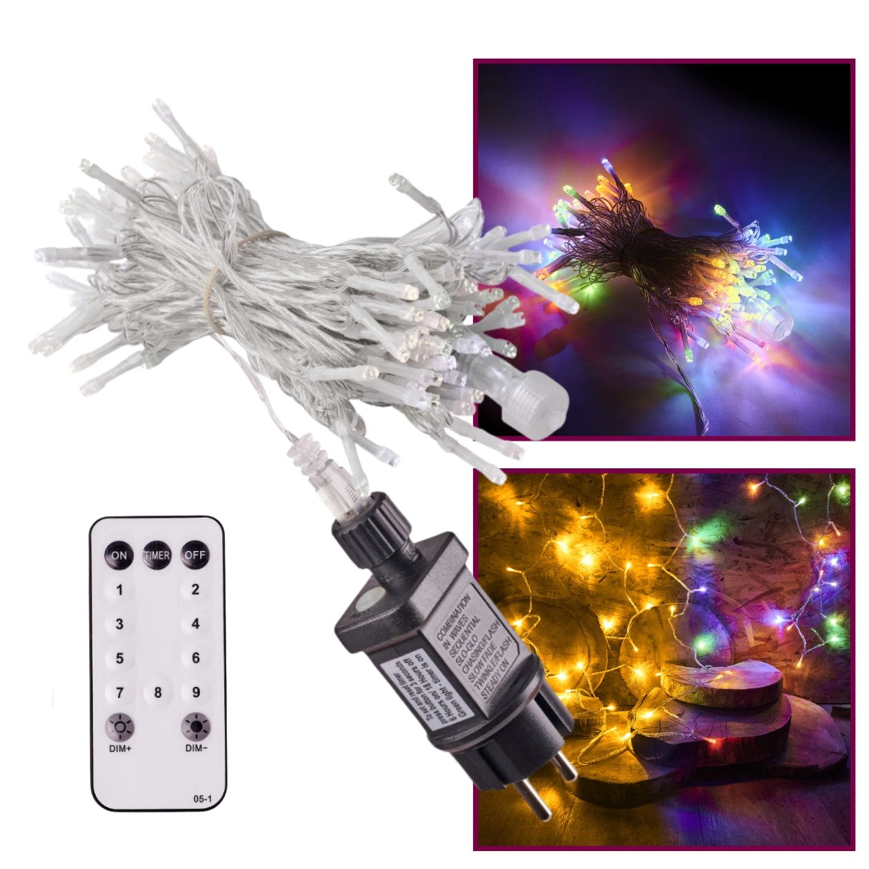 El mando a distancia permite encender/apagar cómodamente y cambiar los efectos a distancia. Hay 8 modos + combinación (9 secuencias en total), desde un parpadeo suave hasta luz fija. La alimentación por red ofrece rendimiento constante y un uso sin preocupaciones, sin cambiar pilas. Gracias al conector de enlace, puedes conectar otra guirnalda y ampliar la decoración según tus necesidades.