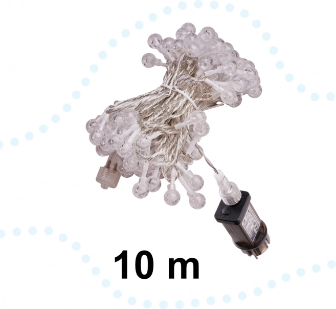 Esta guirnalda luminosa decorativa con delicadas bolitas crea una agradable luz blanco cálido, ideal para la decoración navideña, bodas, fiestas y para hacer más acogedor el salón o el dormitorio en el día a día. Gracias a sus 10 m de longitud y 100 LED, iluminarás fácilmente ventanas, paredes, barandillas o el árbol.