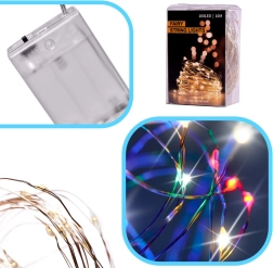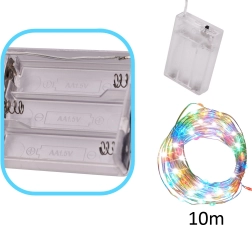 Con la alimentación 3× AA no estás limitado por cable ni enchufe. Ideal para crear decoraciones originales: botella luminosa, tarros, coronas o fondo para fotografías. La larga guirnalda de 10 m ofrece muchas posibilidades y se oculta fácilmente gracias al alambre fino.