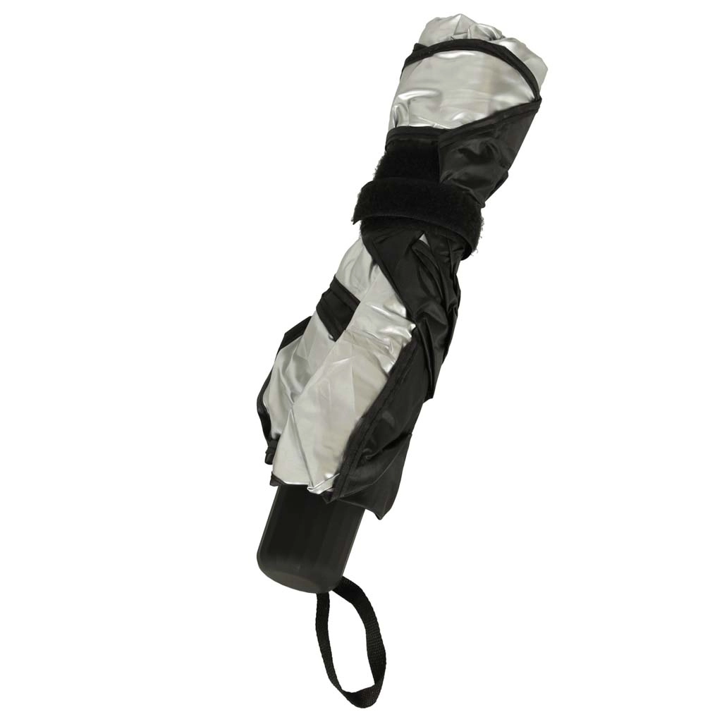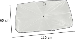 Protege tu vehículo del calor y de la radiación UV. Esta inteligente pantalla se despliega con la misma facilidad que un paraguas, se coloca sobre el parabrisas y su capa reflectante refleja los rayos del sol, manteniendo el interior notablemente más fresco. Ideal para turismos más grandes gracias a su tamaño de 65 × 110 cm.