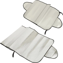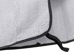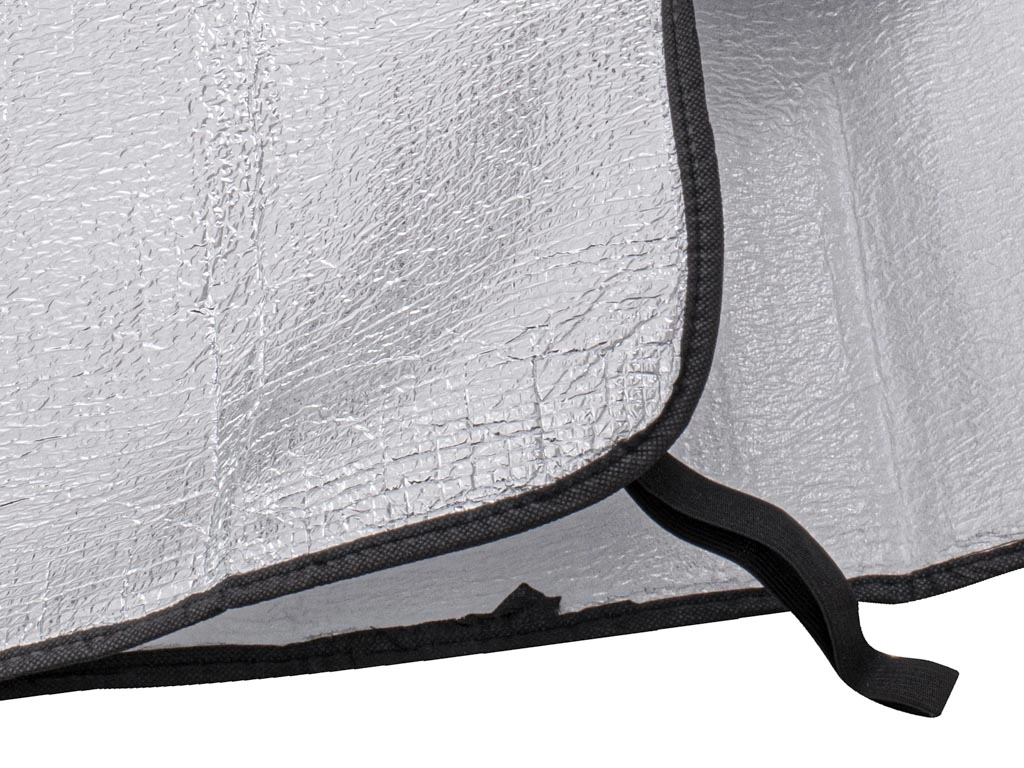 Esta práctica cubierta protectora para el parabrisas delantero o trasero reduce de forma fiable el sobrecalentamiento del interior en verano y, en invierno, evita la acumulación de escarcha y nieve. La superficie reflectante desvía los rayos del sol, mientras que en los días fríos la capa termoaislante actúa como barrera contra el hielo.
