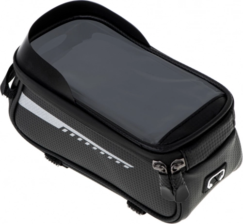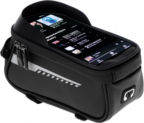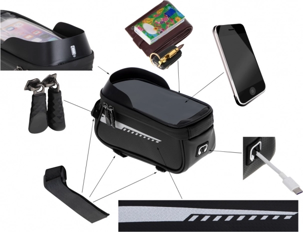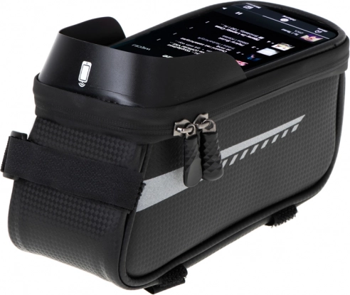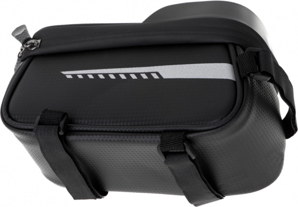 Sus dimensiones compactas no estorban al pedalear. El bolsillo se cierra con cremallera, lo que asegura que nada se caiga ni siquiera en curvas pronunciadas. La instalación de la bolsa se realiza con tres tiras de velcro: una en el manillar y dos en el cuadro, lo que garantiza una estabilidad perfecta durante la marcha. Se adapta a cualquier modelo de bicicleta, independientemente de la marca.
