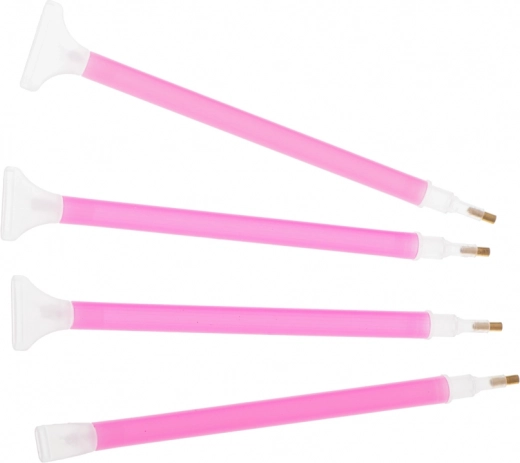 Las distintas puntas de los bolígrafos permiten pegar varias gemas a la vez, lo que reduce el tiempo necesario para completar la imagen.