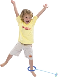 El juego es intuitivo: colócate el aro en el tobillo, hazlo girar y con la otra pierna salta la cuerda con la pelota. Un reto fantástico para niños y adultos: ¿quién hará más vueltas o lo hará girar más rápido?