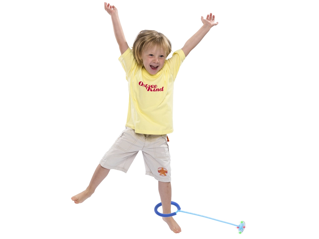 Divertido aro para saltar en el tobillo con luces LED intermitentes que motiva a los niños a moverse y desarrolla la coordinación, el equilibrio y los reflejos. Solo tienes que colocarte el aro en el tobillo, hacerlo girar y saltar la pelota giratoria: ¡cuanto más rápido gire, más brilla!