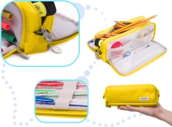 Práctico estuche 3 en 1 de tres compartimentos para la escuela, la oficina y los viajes. Gracias a sus tres bolsillos con cremallera, mantiene todo el material de escritura bien organizado y guardado de forma segura. Los bolsillos interiores y las gomas elásticas garantizan que cada accesorio tenga su lugar. Sus dimensiones compactas ahorran espacio en la mochila, mientras que el resistente poliéster asegura una larga vida útil. Uso multifuncional, 3 compartimentos independientes, material resistente y organización de primera.