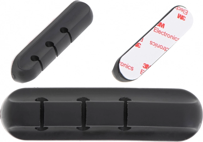 Práctico organizador de cables de silicona suave y resistente que ayuda a domar cables de carga, datos y audio en casa, en la oficina o en el taller. Gracias a sus 3 ranuras mantiene simultáneamente varios conductores de hasta 6 mm de diámetro y evita enredos o daños.
