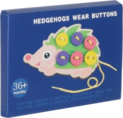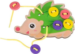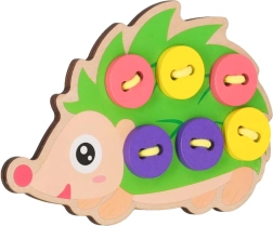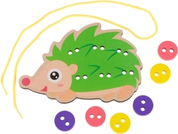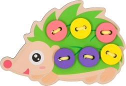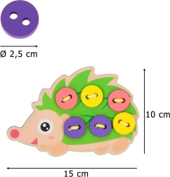 Este erizo para ensartar es una herramienta ideal para los primeros pasos en el enlazado y el “cosido”. Los niños pasan la cuerda por los orificios y fijan los botones de colores en las “púas” del erizo. Los colores vivos y alegres invitan de forma natural al juego y ayudan a distinguir colores y formas.