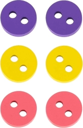 El set de botones de colores y la cuerda larga invitan a crear diferentes patrones, a contar y a aprender los colores.