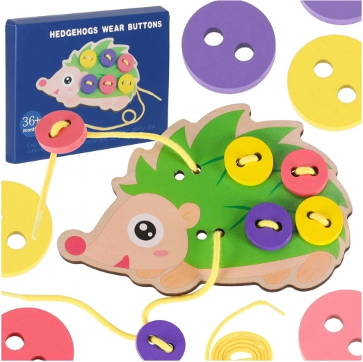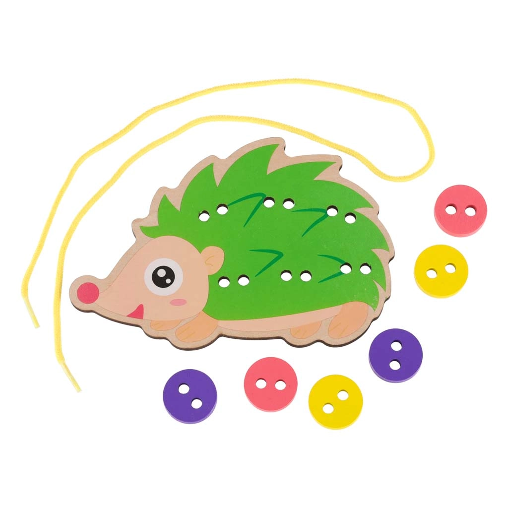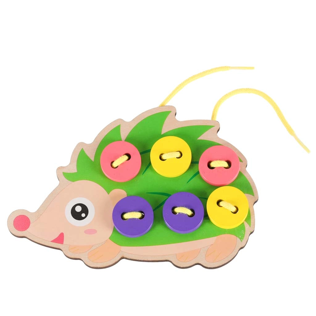 El juguete está cuidadosamente fabricado en madera, con bordes lisos y tratado con pinturas seguras y no tóxicas. Desarrolla la destreza de los dedos, la concentración y ayuda a practicar el anudado y las primeras puntadas.