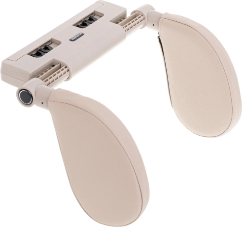 Dos brazos independientes se pueden levantar o abatir hasta 180°, para que ajustes fácilmente el apoyo ideal de la cabeza y el cuello tanto para dormir como para viajes largos.