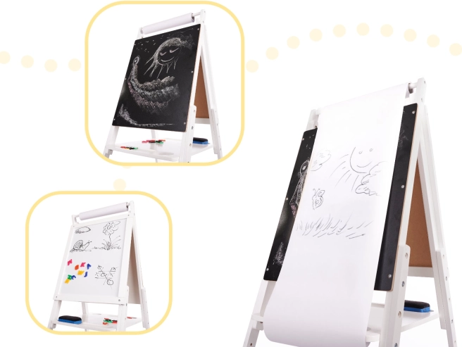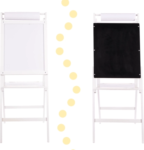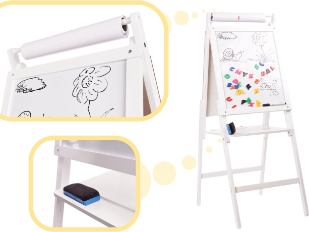 Te ofrecemos un gran juguete que combina diversión y aprendizaje. La pizarra de doble cara ayuda a desarrollar habilidades de escritura, cálculo y reconocimiento de letras. Gracias a su robusta estructura de madera, la pizarra es estable y fácil de usar para cualquier actividad.