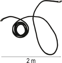 La longitud de 2 m permite envolverla fácilmente alrededor de un árbol o una viga y ajustar cómodamente la altura de suspensión.