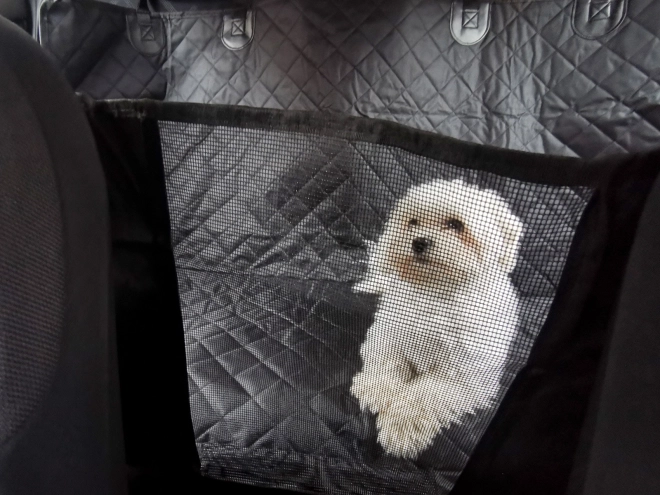La ventana de malla integrada entre los asientos delanteros mejora la ventilación y permite al perro ver a su dueño sin distraer al conductor.