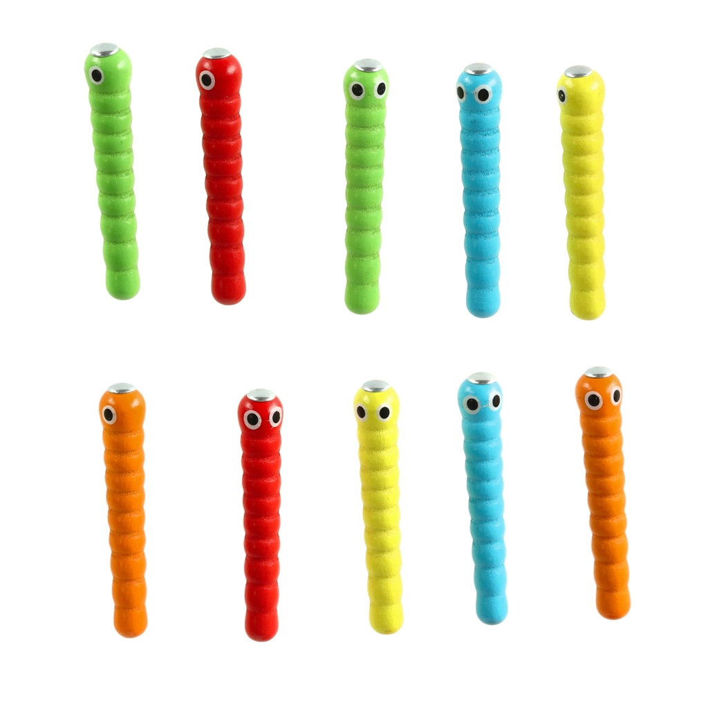 La varita magnética ayuda a los niños a entrenar el agarre preciso, la coordinación mano‑ojo y la paciencia al atrapar y devolver las orugas a su lugar.