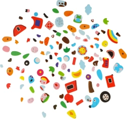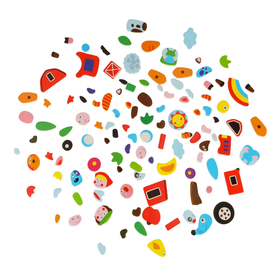 La pizarra incluye aproximadamente 100 piezas magnéticas variadas que fomentan la creatividad y la creación.