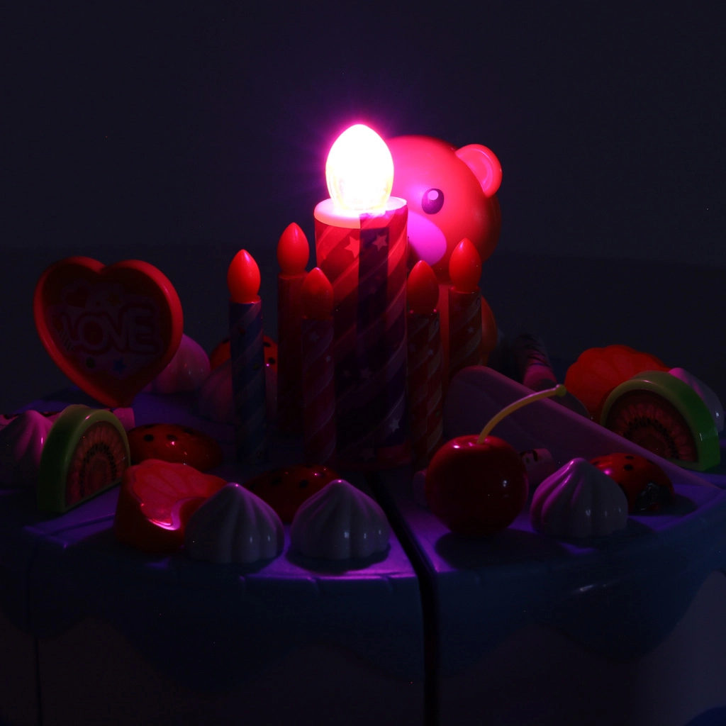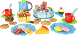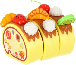 - 7× vela (1× con luz), 12× merengue/bizcocho ligero, 4× bastones de caramelo, 3× macaron, 5× cereza, 5× mandarina, 5× fresa, 4× kiwi, 1× osito, 2× muffin, 9× galleta variada, 3× trozo de brazo de gitano, 6× porción de pastel, 1× cuchillito, set de pegatinas, 4× plato, 2× taza, 2× tenedor, 2× cucharita, 2× cuchillo, 1× jarrita