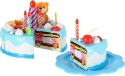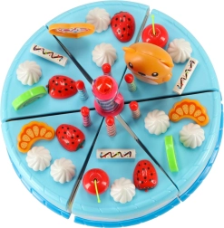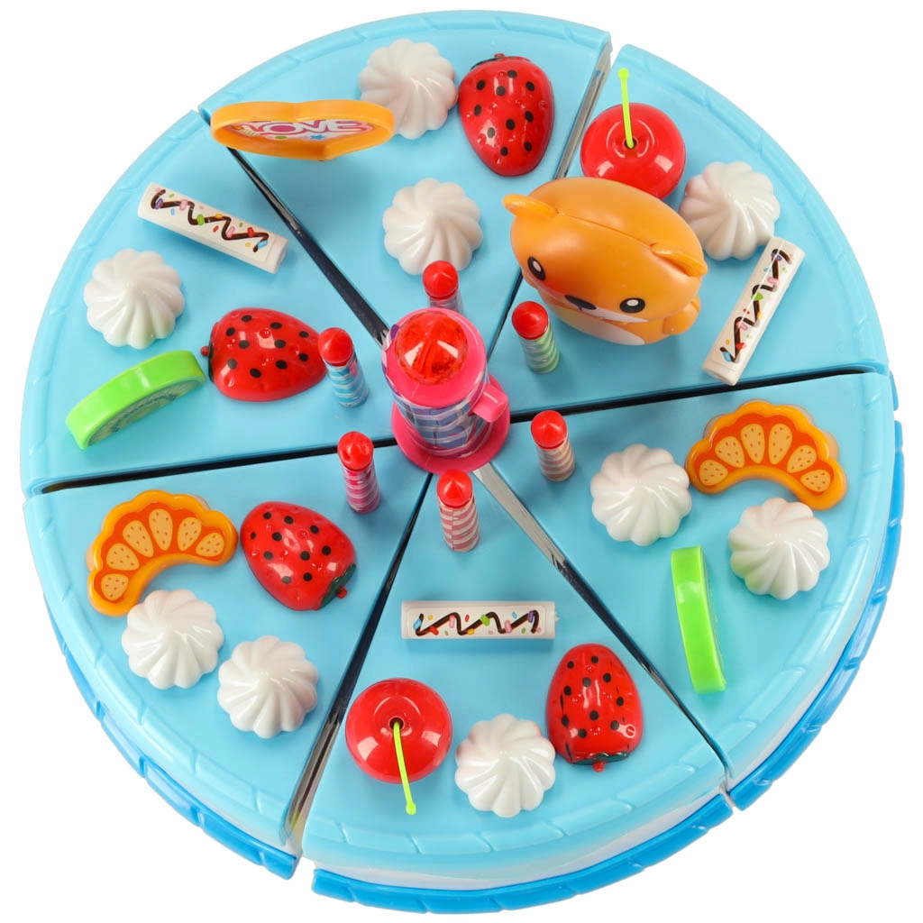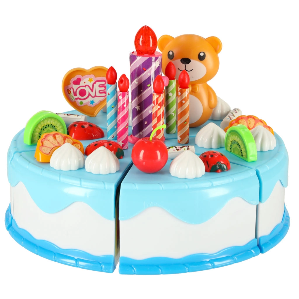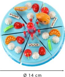 Colorido pastel de cumpleaños para cortar con velcro que encantará a pequeños reposteros y a los invitados a la hora del té. El set incluye 80 piezas entre vajilla, cubiertos, frutas, galletas y velas (una con luz). Resistente plástico ABS, seguro desde 3 años, fomenta la imaginación y la motricidad fina.