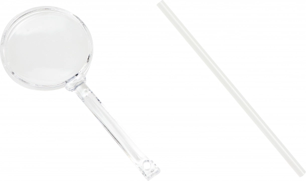 El set incluye una lupa y una varilla/pajita de plástico para crear orificios fácilmente y estudiar en detalle los caminos de las hormigas.