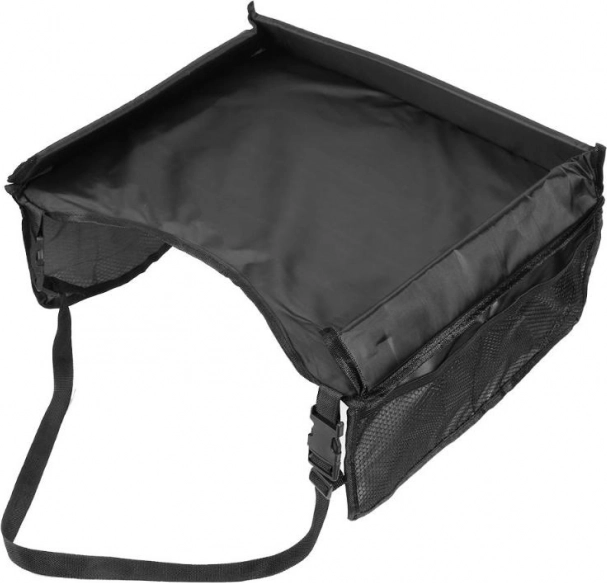Práctica mesa de viaje para sillas de coche infantiles y cochecitos, fabricada en material impermeable, ofrece una superficie estable para jugar y comer. Gracias a las correas ajustables y a los bolsillos laterales de malla, todo lo necesario está siempre a mano y el viaje es mucho más cómodo para niños y padres. La estructura estable, la superficie impermeable y la instalación rápida la convierten en el accesorio ideal para viajes en coche, autobús y avión.