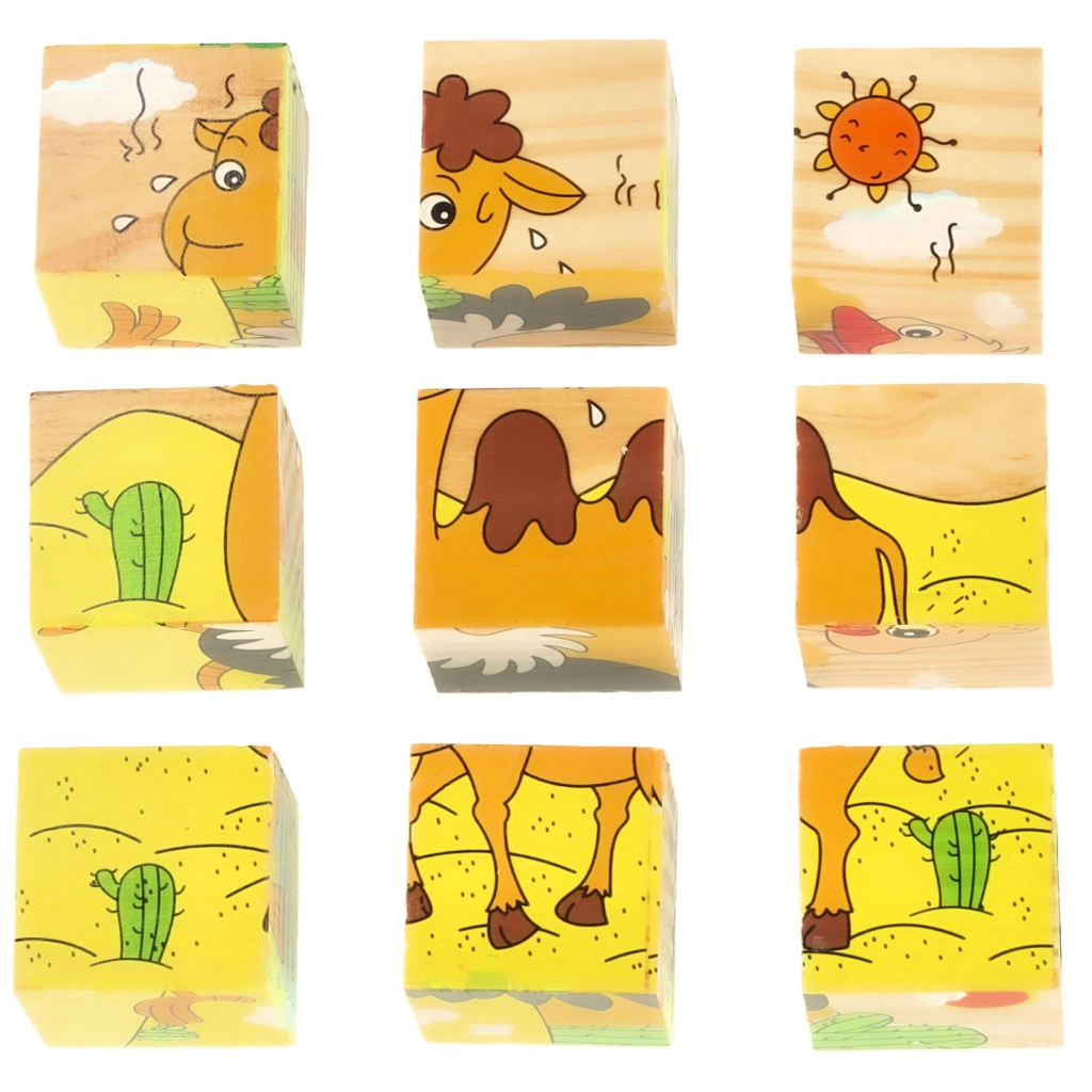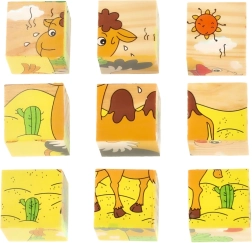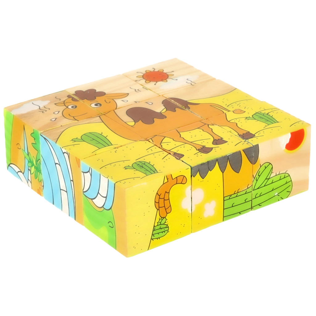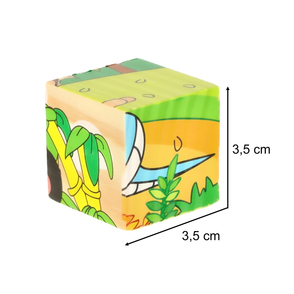 El rompecabezas de madera Safari 3D 6 en 1 es una herramienta perfecta para aprender y divertirse al mismo tiempo. Con nueve cubos de madera, cada uno con unas dimensiones de 3,5 cm x 3,5 cm x 3,5 cm, se pueden montar seis imágenes de animales diferentes: un panda, una serpiente, un monito, un avestruz, un canguro y un camello. El puzzle completo mide 10 cm x 10 cm x 3,5 cm.