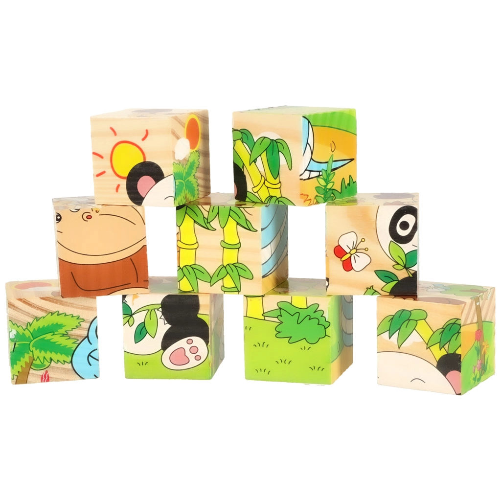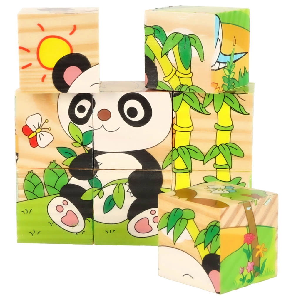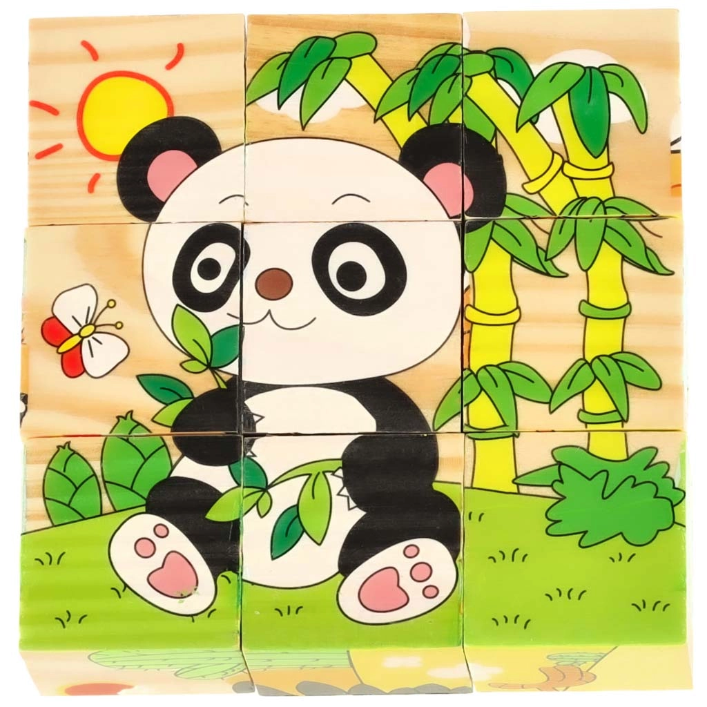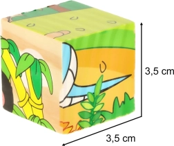 El rompecabezas de madera Safari 3D 6 en 1 es una herramienta perfecta para aprender y divertirse al mismo tiempo. Con nueve cubos de madera, cada uno con unas dimensiones de 3,5 cm x 3,5 cm x 3,5 cm, se pueden montar seis imágenes de animales diferentes: un panda, una serpiente, un monito, un avestruz, un canguro y un camello. El puzzle completo mide 10 cm x 10 cm x 3,5 cm.