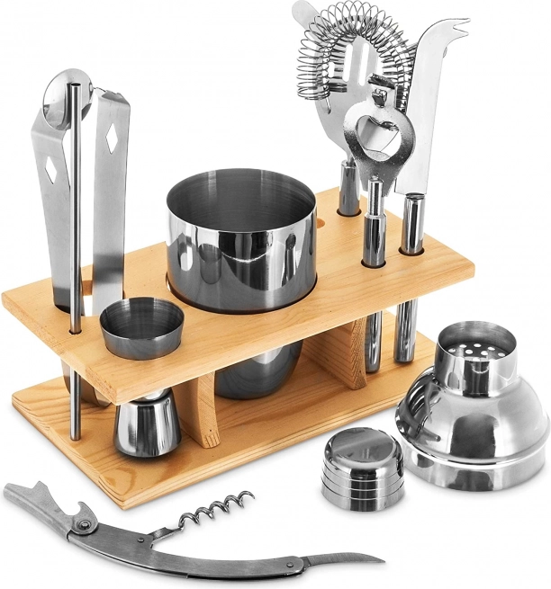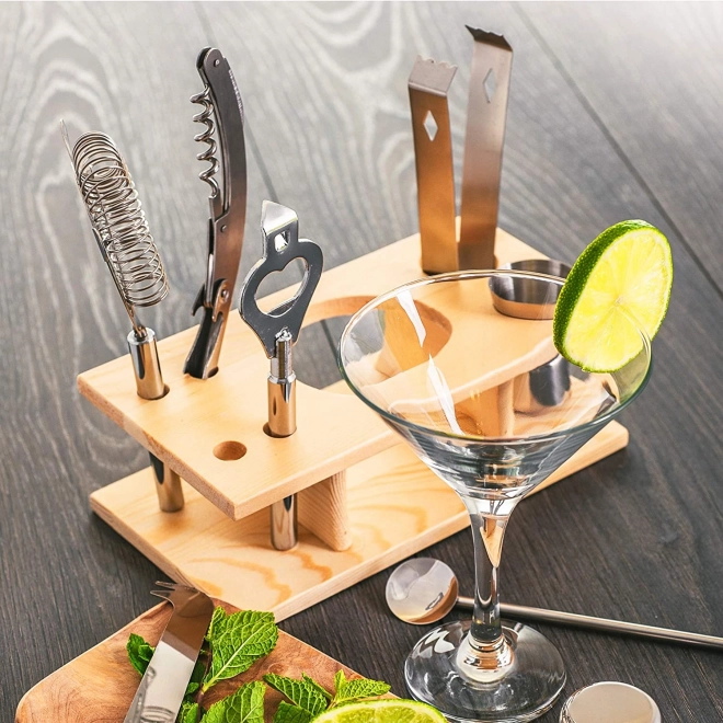 Adecuado para profesionales y aficionados del arte de la coctelería. Gracias a las herramientas incluidas en el set, puedes abrir fácilmente cualquier botella, mezclar las proporciones correctas de líquidos y separar el hielo o trozos más grandes de fruta.