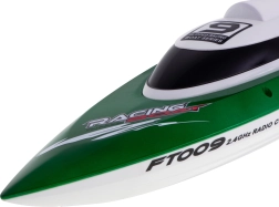 Esta lancha RC de velocidad FT009 ofrece un control estable, respuestas ágiles y un excelente planeo gracias a su casco aerodinámico. El mando tipo pistola de 2.4 GHz garantiza un alcance fiable y una interferencia mínima, para navegar en estanques, lagos y bahías tranquilas.